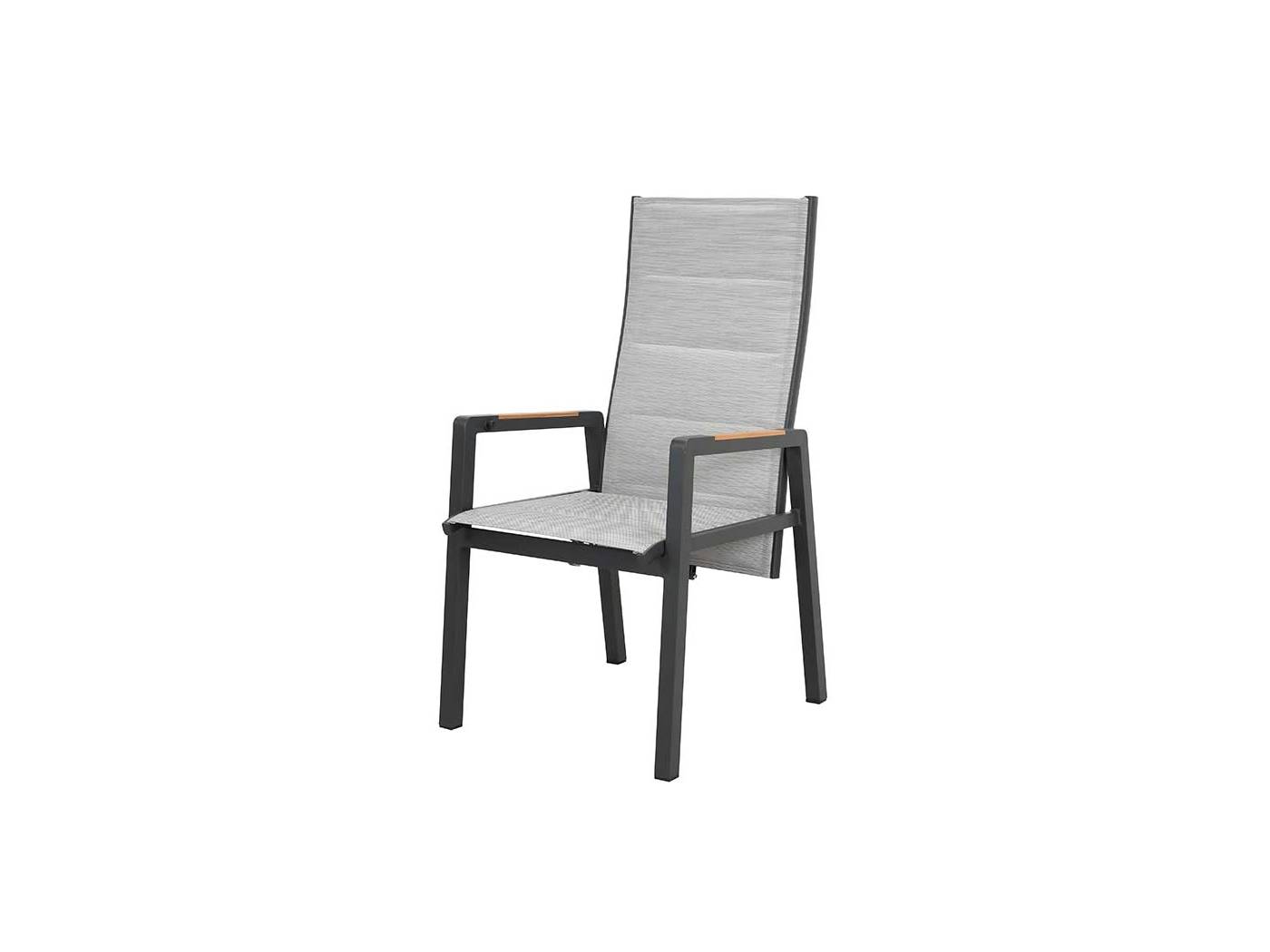 Εξαιρετικης αισθητικής και ποιότητας Μεγάλη Τραπεζαρία αλουμινίου με ξύλο Teak. Ένα τραπέζι επεκτεινόμενα και έξι Πολυθρόνες με ανάκληση της πλάτης