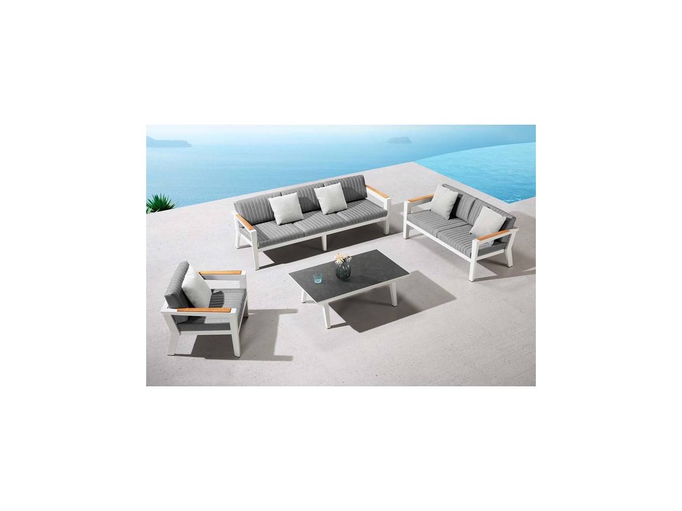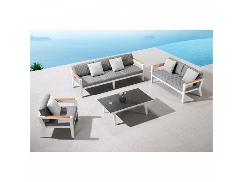 3+2 lounge set αλουμινίου 5-τεμαχίων: 2 πολυθρόνες lounge, 1 καναπές lounge 3-θέσεων, 1 καναπές lounge 2-θέσεων, 1 κεντρικό τραπεζάκι και σετ μαξιλάρια.