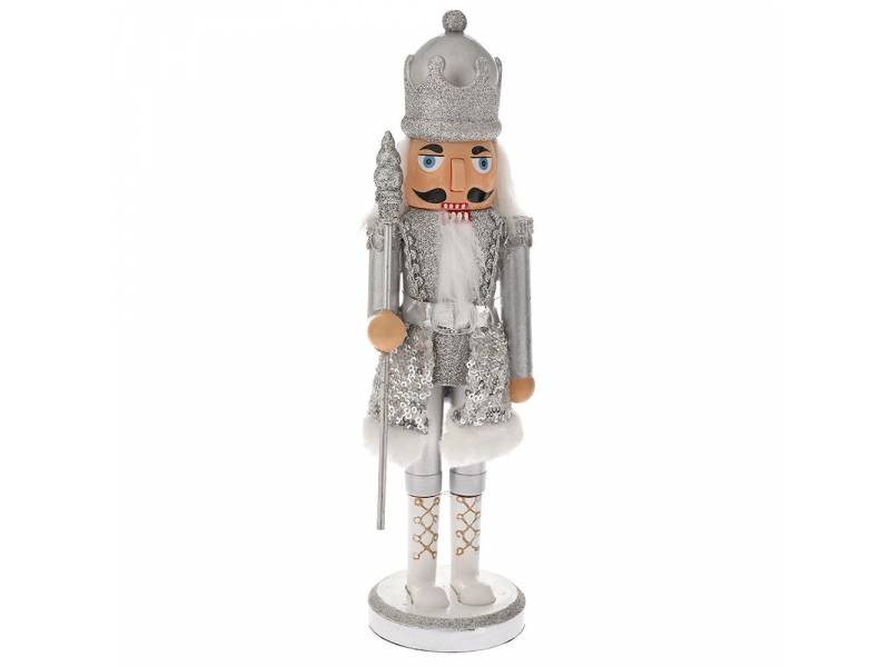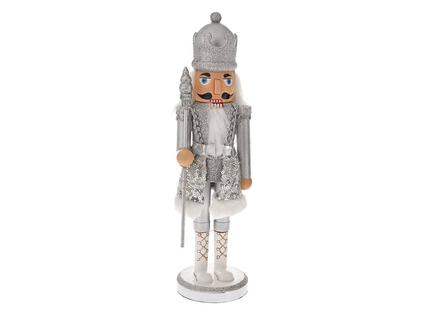 Χριστ. ασημί καρυοθραύστης με σκήπτρο 17 εκ
