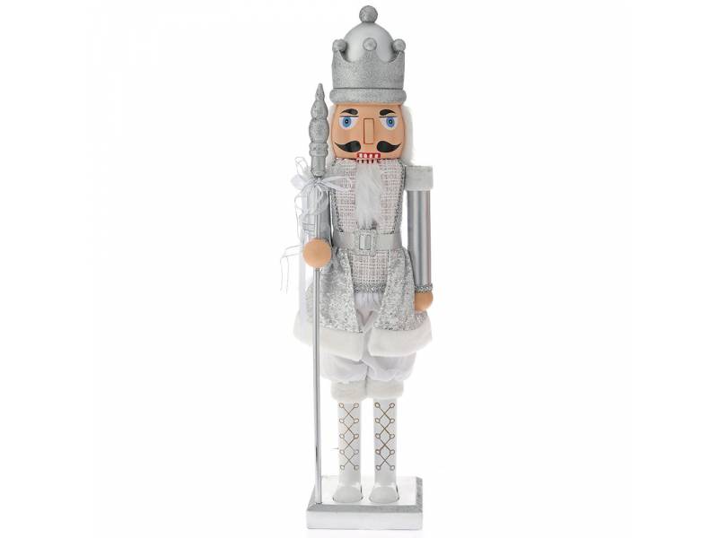 Ασημί καρυοθραύστης με σκήπτρο 80 εκ.-bigstore.gr