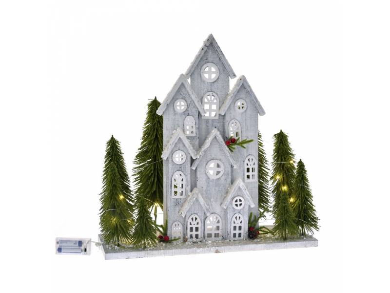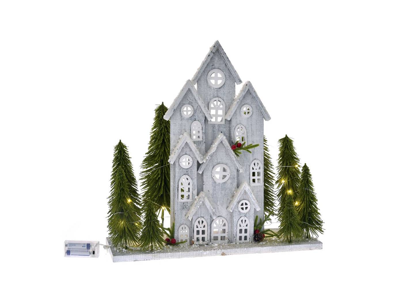 Χριστ. γκρι ξυλινο σπιτι 49χ16χ49 εκ. με δεντρα και 20led λαμπάκια μπαταριάς