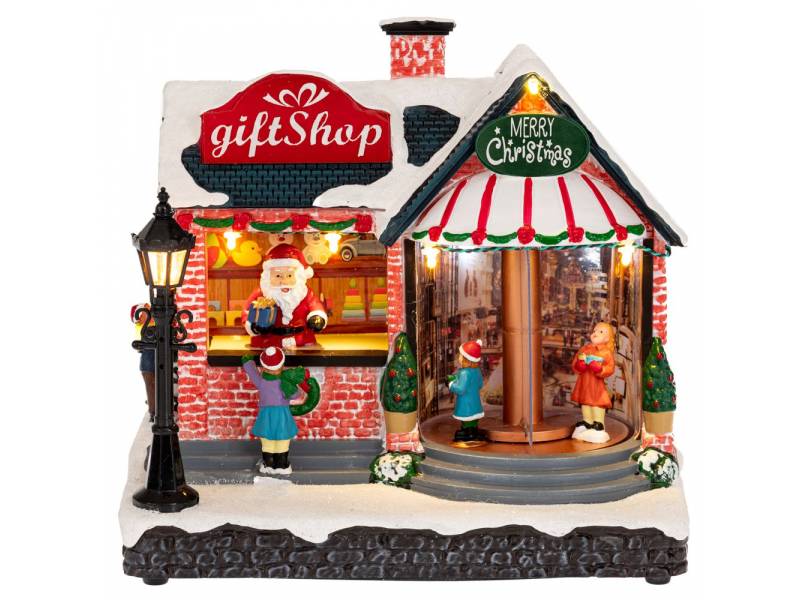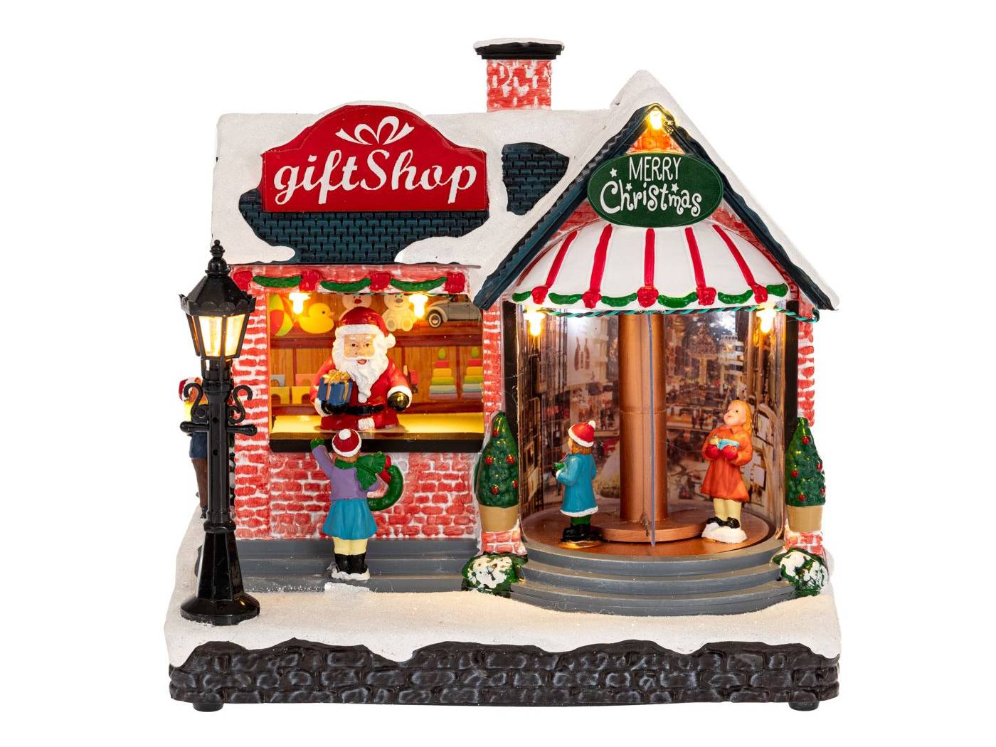 Χριστουγεννιάτικο εντυπωσιακό φωτιζόμενο μαγαζί. Έχει φωτακια σε αρκετά σημεία, κίνηση στην είσοδο του καταστήματος και παίζει μουσική, για την οποία έχει κουμπι on/off.