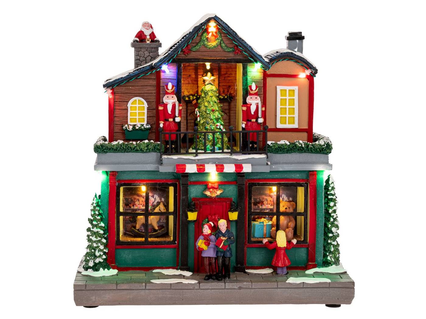 Χριστουγεννιάτικο εντυπωσιακό φωτιζόμενο μαγαζί. Έχει φωτάκια σε αρκετά σημεία, κίνηση σε κάποια στοιχεία και παίζει μουσική, για την οποία έχει κουμπι on/off.