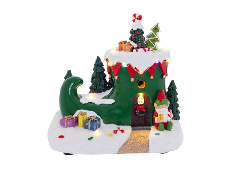 Φωτιζόμενο σκηνικό με σπίτι σε σχήμα μπότας ξωτικού 19x12x18 εκ. μπαταρίας-bigstore.gr