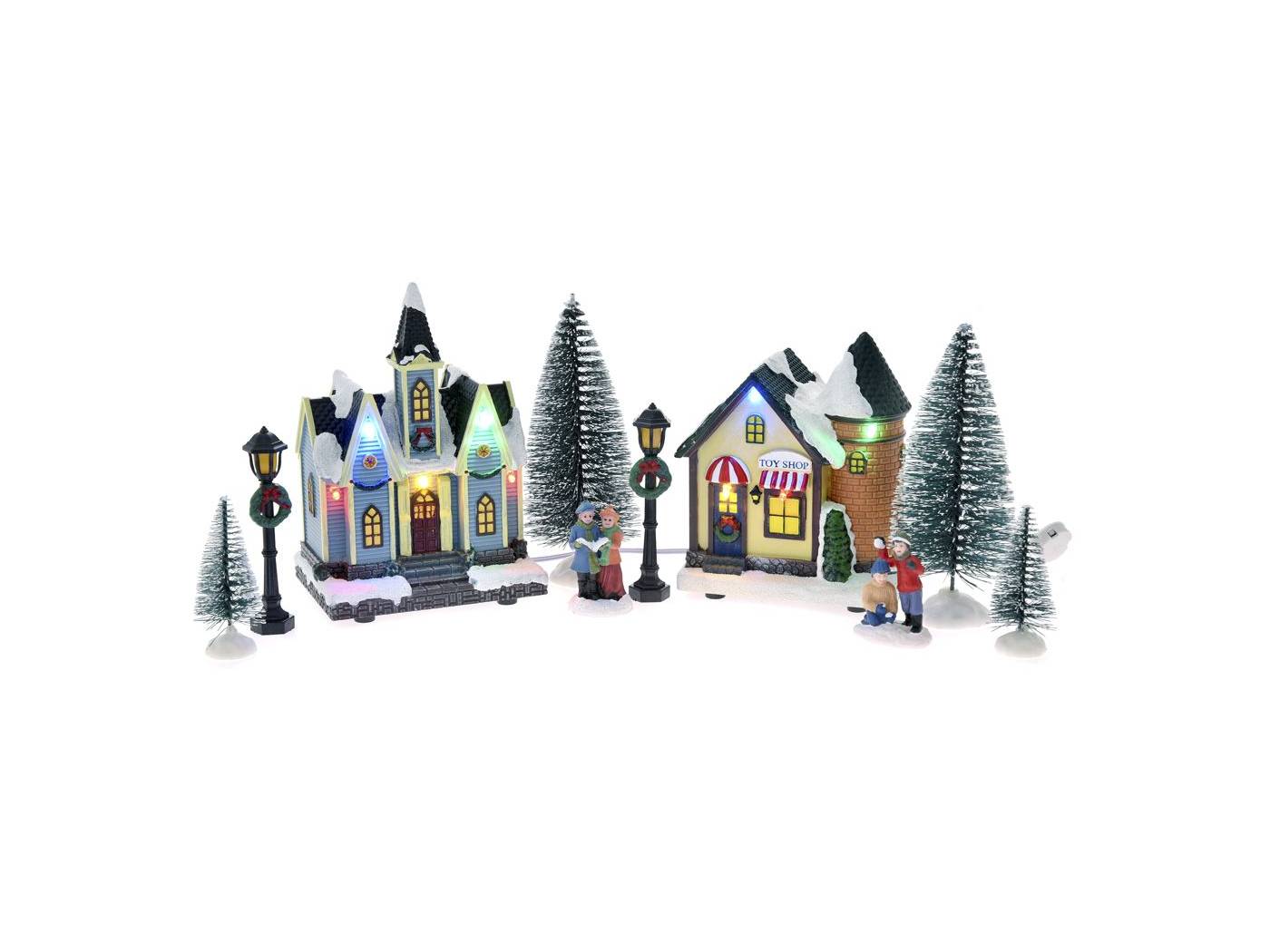 Φωτιζόμενο σκηνικό χωριό με φιγούρες σετ 10 τεμ μπαταρίας 10x7x12 εκ.