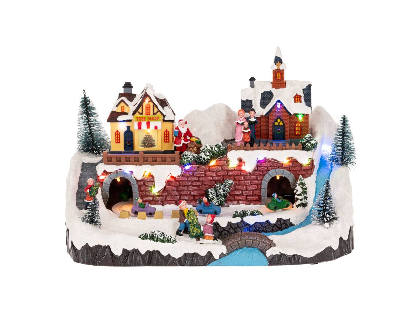 Χριστουγεννιάτικο εντυπωσιακό χωριό με σπιτάκια, χαρούμενες φιγούρες ανθρώπων καθώς και τρένο που γυρνάει γύρω γύρω, μέσα σε τούνελ. Έχει φως σε αρκετά σημεία και μουσική με 8 τραγούδια. Η μουσική έχει κουμπί On/Off.