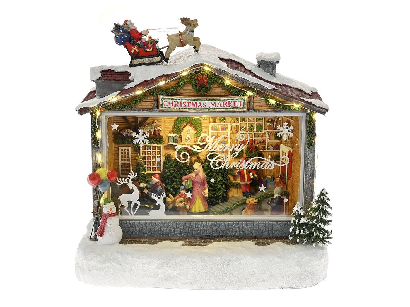 Χριστουγεννιάτικο μαγαζί CHRISTMAS MARKET με φως κίνηση και μουσική 27x15x27 εκ. ρεύματος