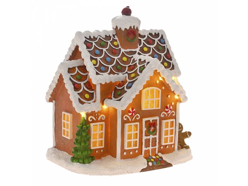 Χριστουγεννιάτικο πολυρεζίν σπίτι με γλυκά με φως 25x17x27 εκ. μπαταρίας