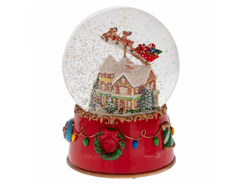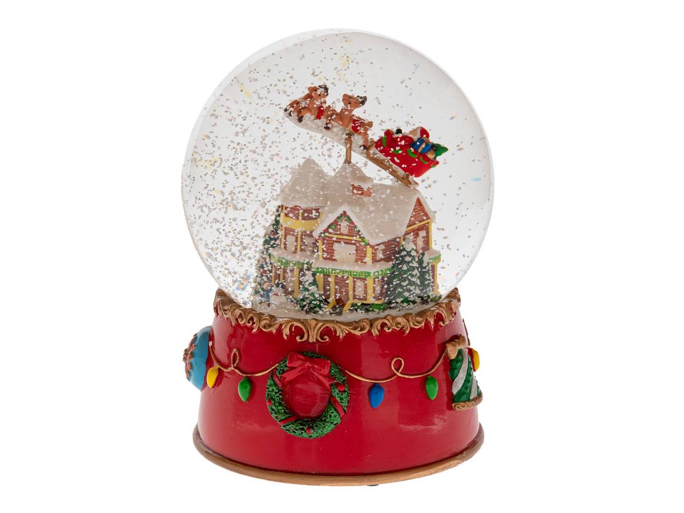 Κόκκινη πολυρεζίν κουρδιστή νερόμπάλα με χριστουγεννιάτικο σκηνικό με μουσική φ13,5x16,5 εκ.-bigstore.gr