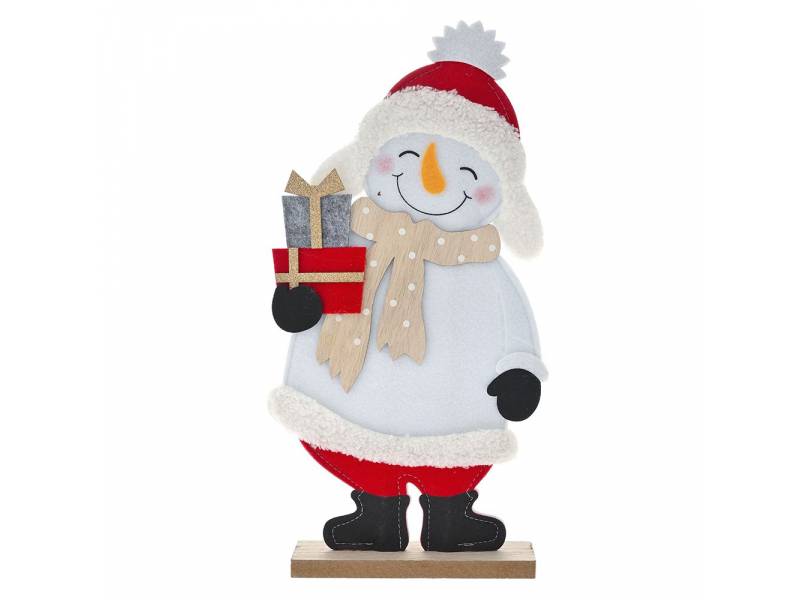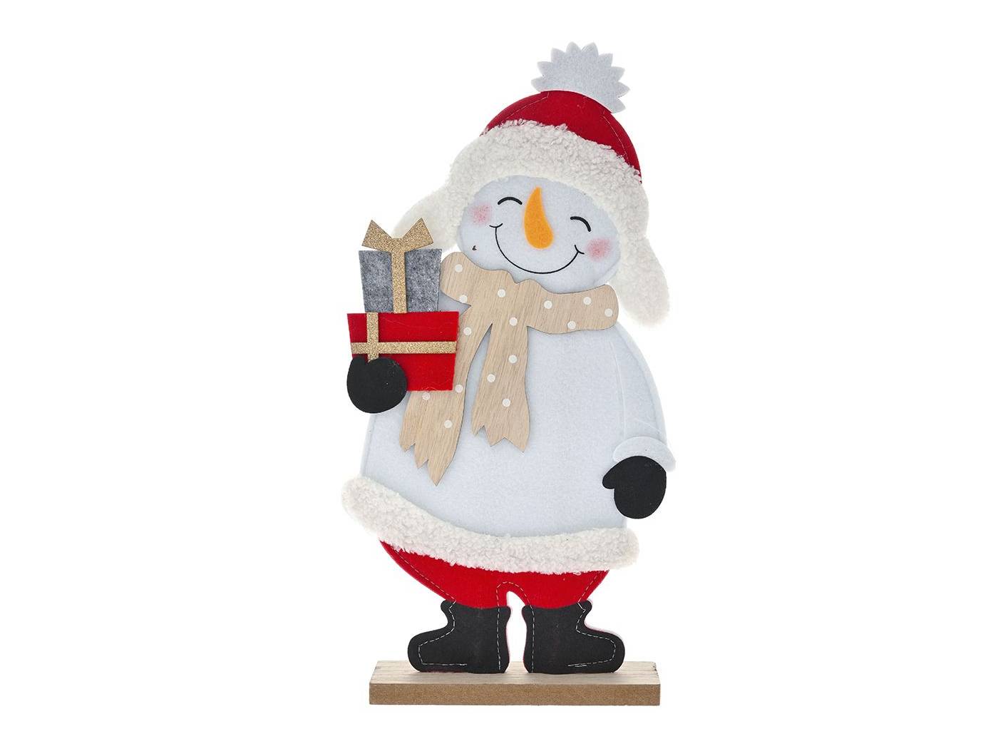 Άσπρος τσόχινος χιονάνθρωπος σε ξύλινη βάση, 19χ5χ37 εκ.