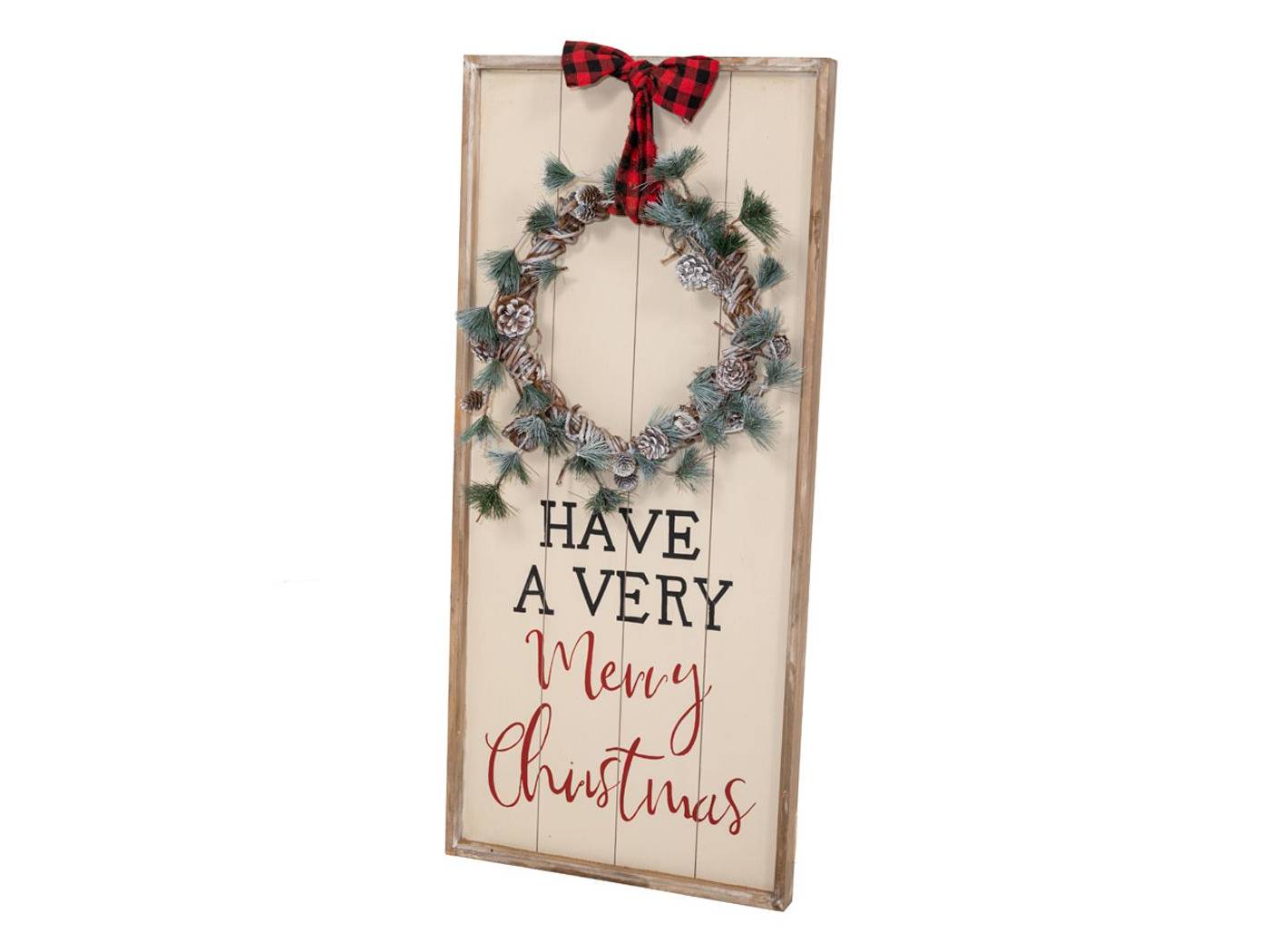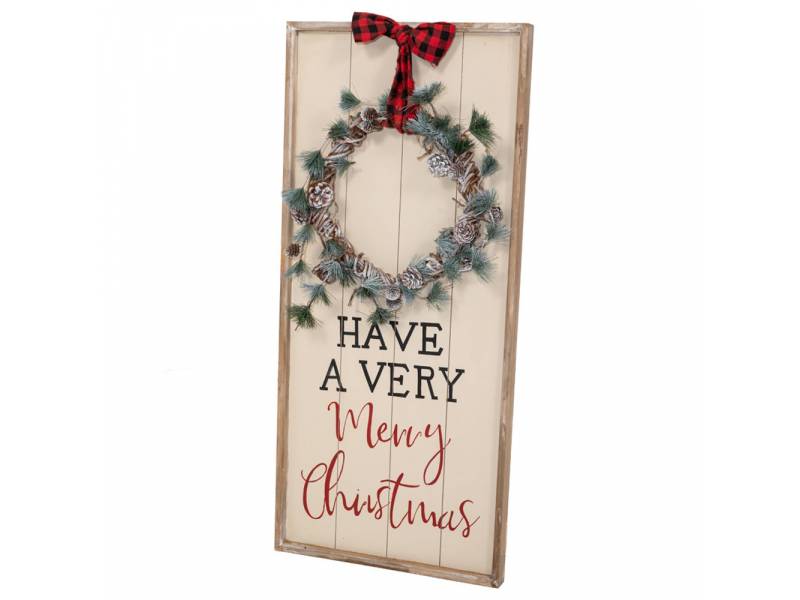 Ξύλινη λευκή πινακίδα με στεφάνι 46x100 εκ. HAVE A VERY MERRY CHRISTMAS