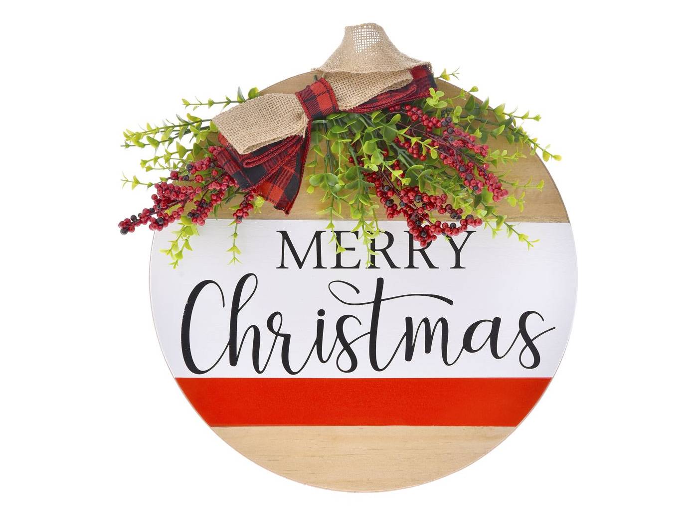 Ξύλινη στρογγυλή πινακίδα πόρτας MERRY CHRISTMAS 35 εκ.