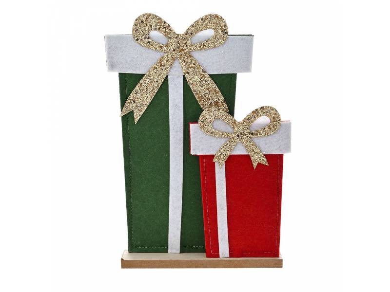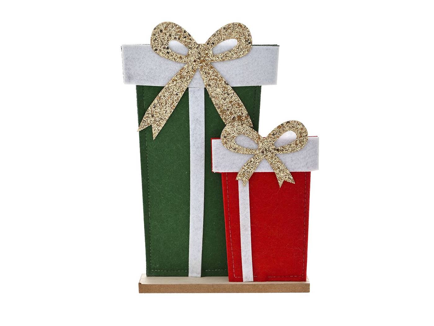Πράσινο κόκκινο τσόχινο κουτί δώρου σε βάση 16x25 εκ.
