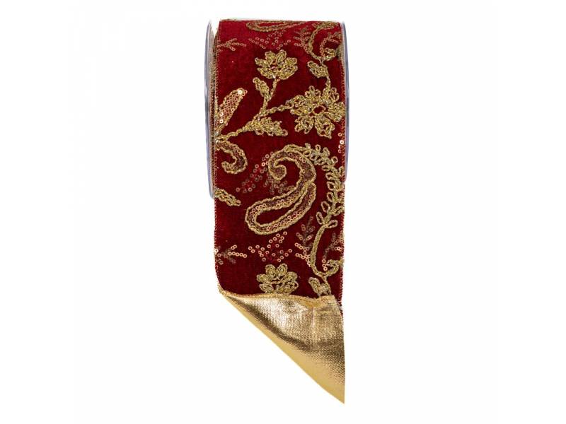 Κορδέλα .EMBROIDERY LONETA FOIL 10 εκ.X4.5m μπορντό-χρυσό