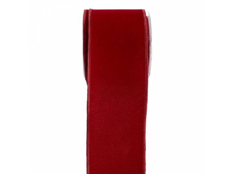 Κορδέλα μονής όψης AA βελουδο με συρμα 9 εκ.X9m μπορντό