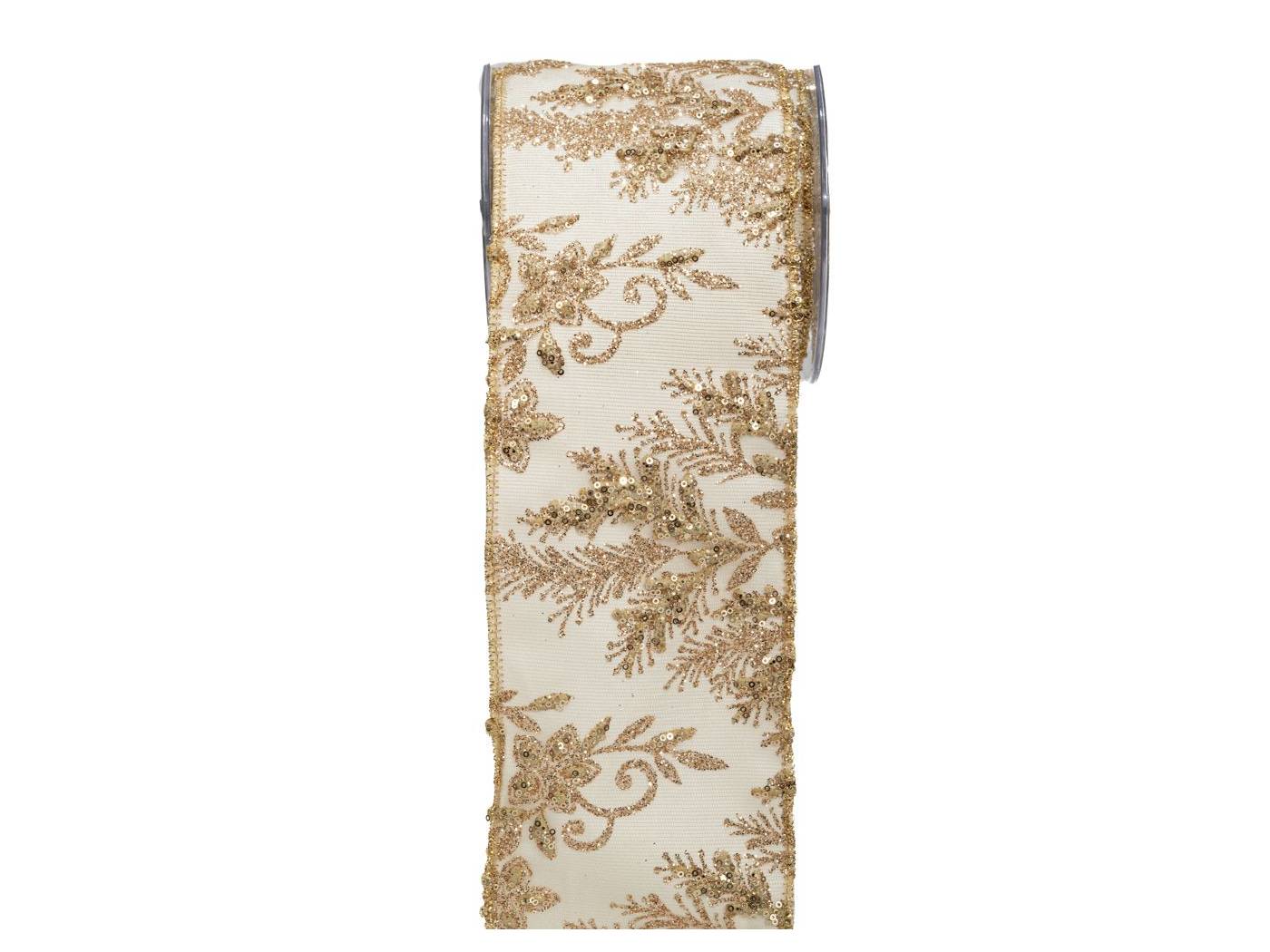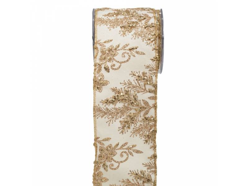 Κορδέλα .EMBROIDERY LONETA FOIL 10 εκ.X4.5m μπορντό-χρυσό