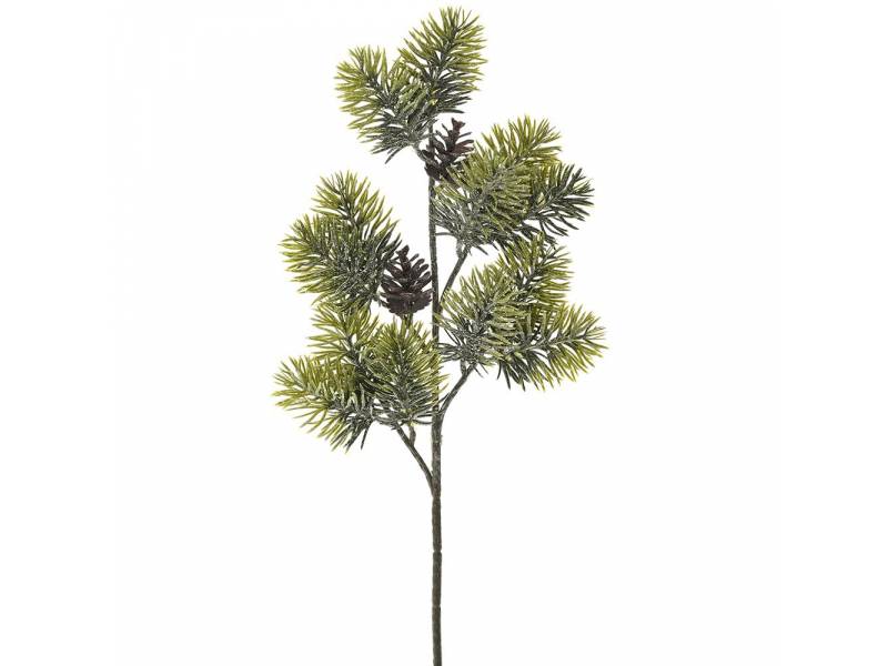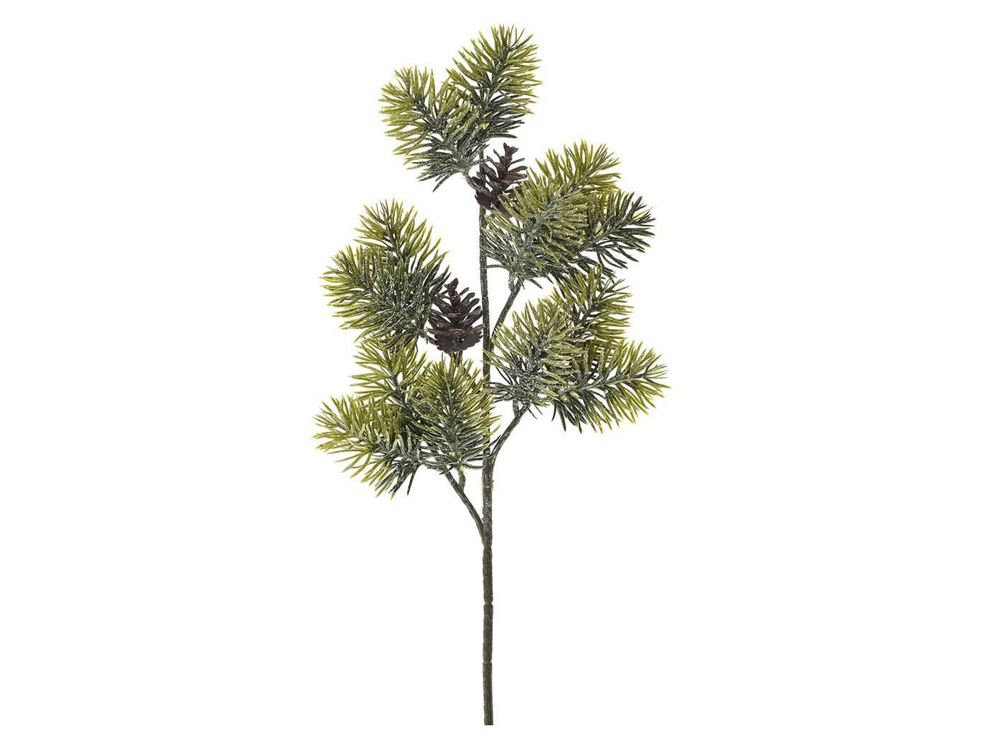 Πράσινο κλαδί με κόκκινα BERRIES κόκκινες μπάλες και παγωμένο κουκουνάρι 50 εκ.