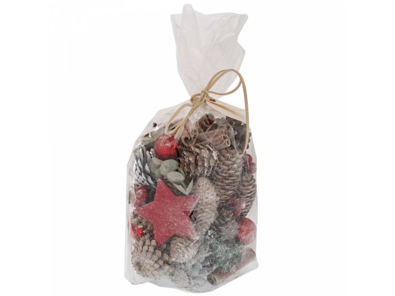 Κόκκινα χιονισμένα κουκουνάρια σε σακουλάκι 55τεμ.-bigstore.gr
