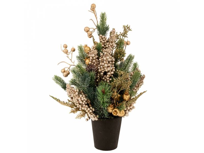 Πράσινο δέντρο ME σαμπάνι BERRIES και κουκουνάρια σε πλαστική γλάστρα 43 εκ.