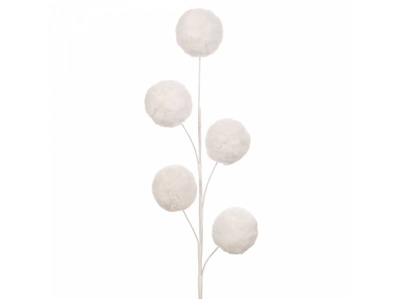 Κλαδί με λευκές βελούδινες μπάλες χ5 75 εκ.