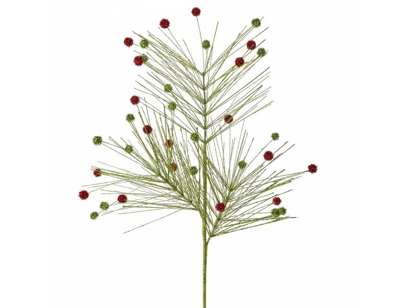 Κλαδί πράσινο με κόκκινα μπαλάκια και στρας 80 εκ.