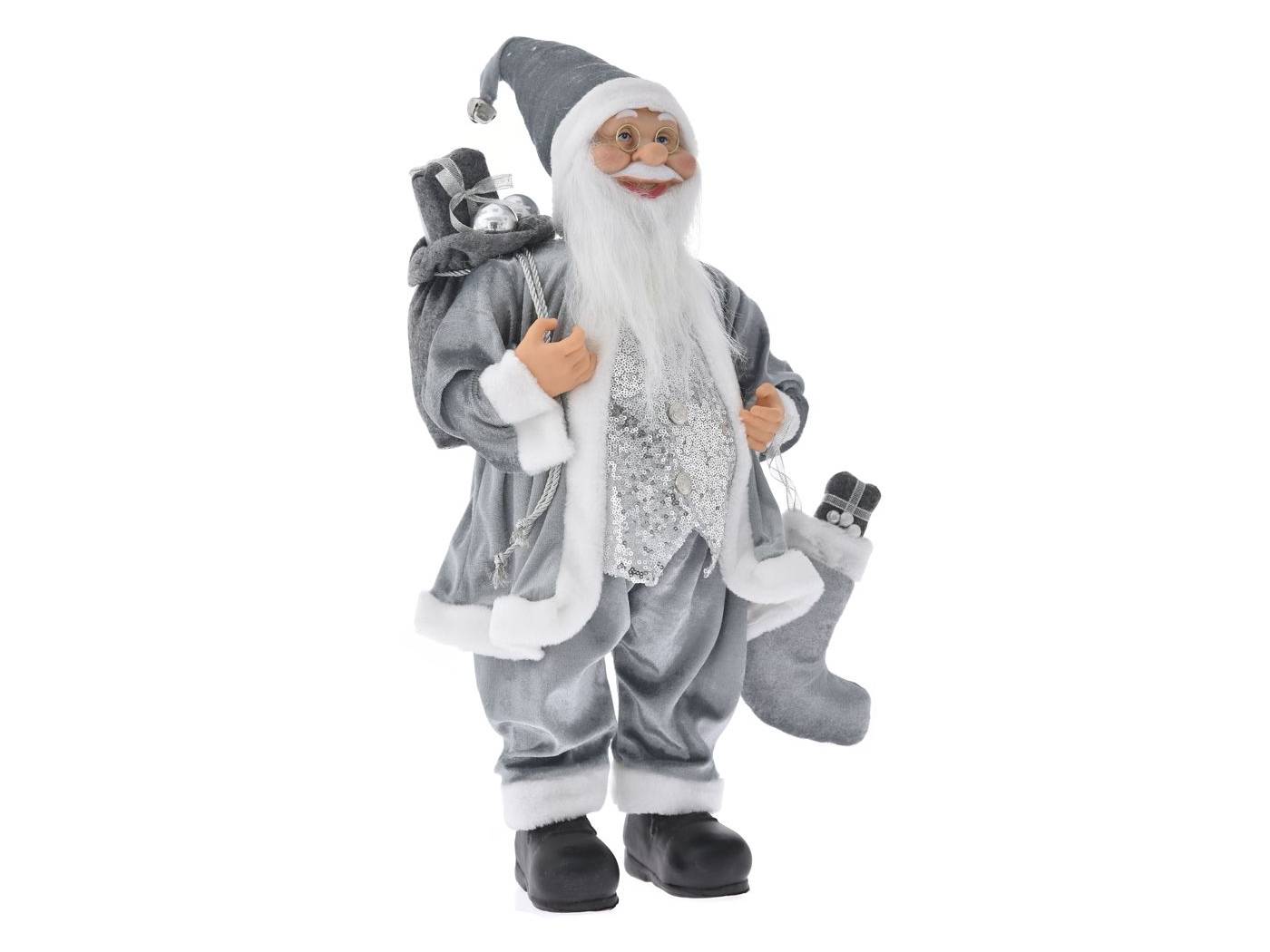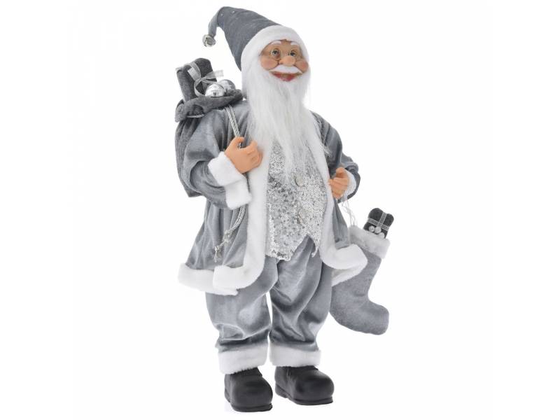 Αι-Βασίλης 80 εκ. με γκρι βελουτέ ρούχα που κρατεί δώρα