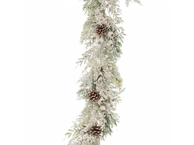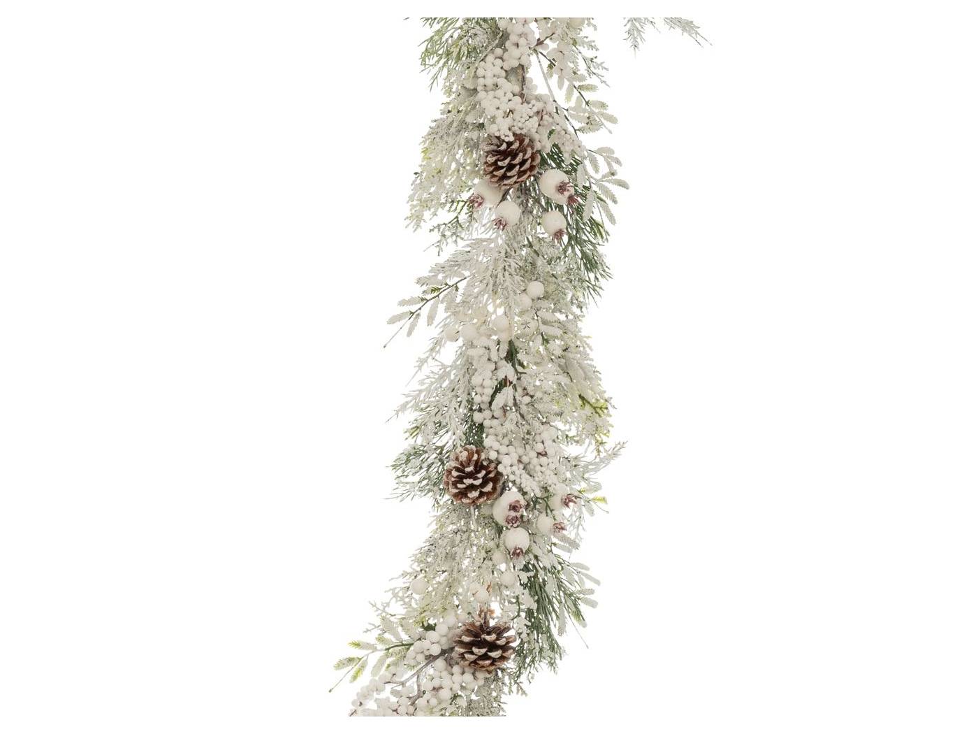 Χιονισμένη γιρλάντα με λευκά BERRIES και κουκουνάρια 180 εκ.