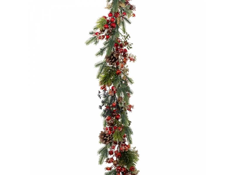 Παγωμένη πράσινη γιρλάντα με κόκκινα BERRIES και κουκουνάρια 180 εκ.-bigstore.gr