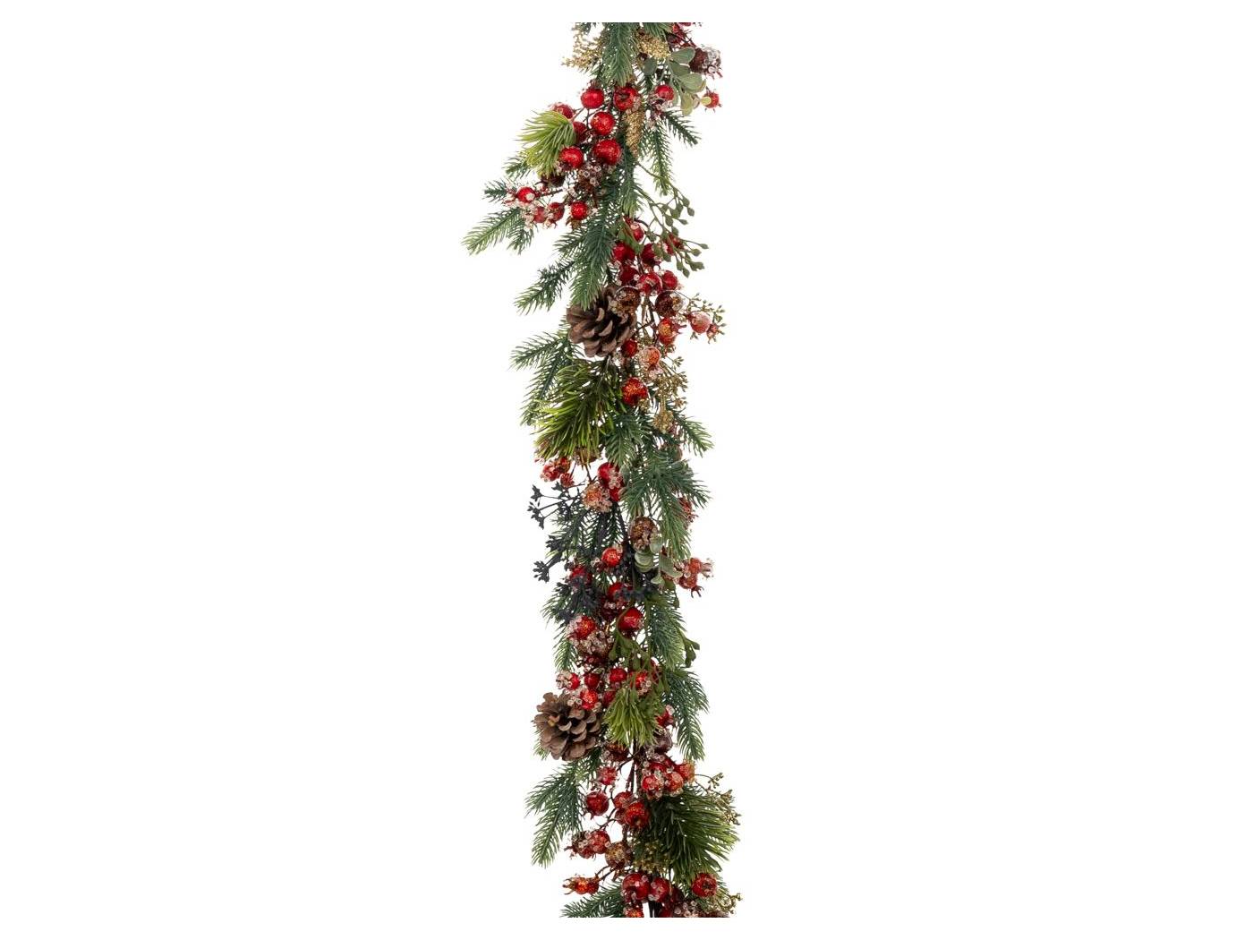 Παγωμένη πράσινη γιρλάντα με κόκκινα BERRIES και κουκουνάρια 180 εκ.