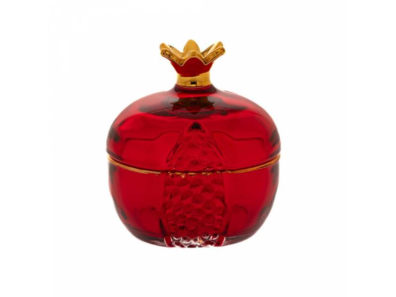 Κόκκινο γυάλινο ρόδι με καπάκι, 10 χ 10 χ 11 εκ.