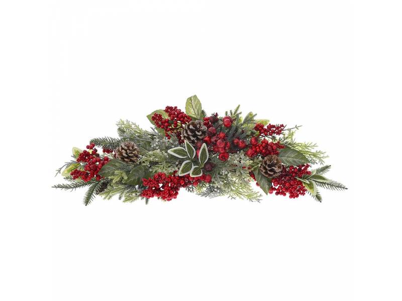 Πράσινη αψίδα με KOKKINA BERRIES και κουκουνάρια 60 εκ.-bigstore.gr