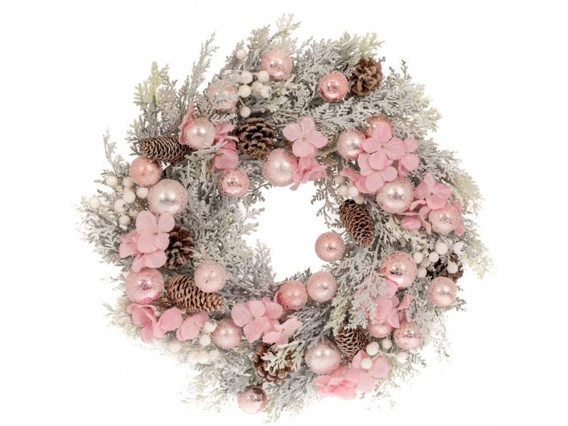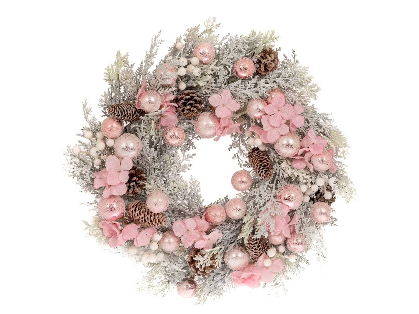 Άσπρο Στεφάνι Με Ροζ Berries Και Κουκουναρια 55εκ.
