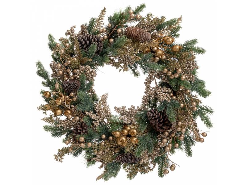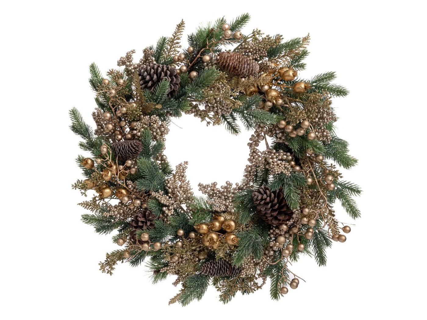 Πράσινο Στεφάνι Με Σαμπανί Berries Και Κουκουνάρια Φ55Εκ