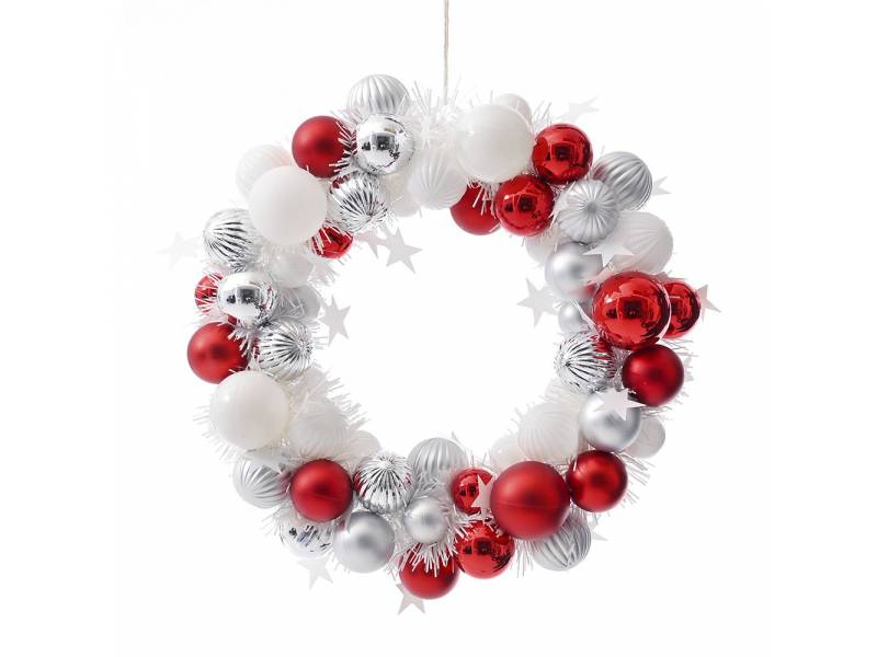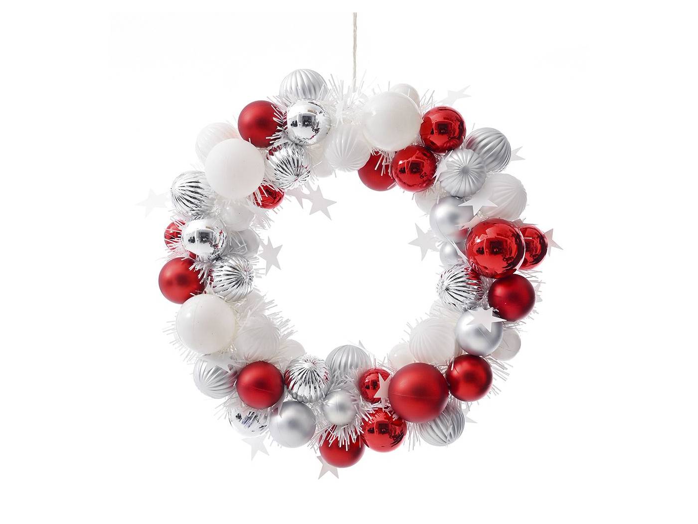 Στεφάνι 32x8 εκ. με κόκκινες άσπρες πλαστικές μπάλες-bigstore.gr