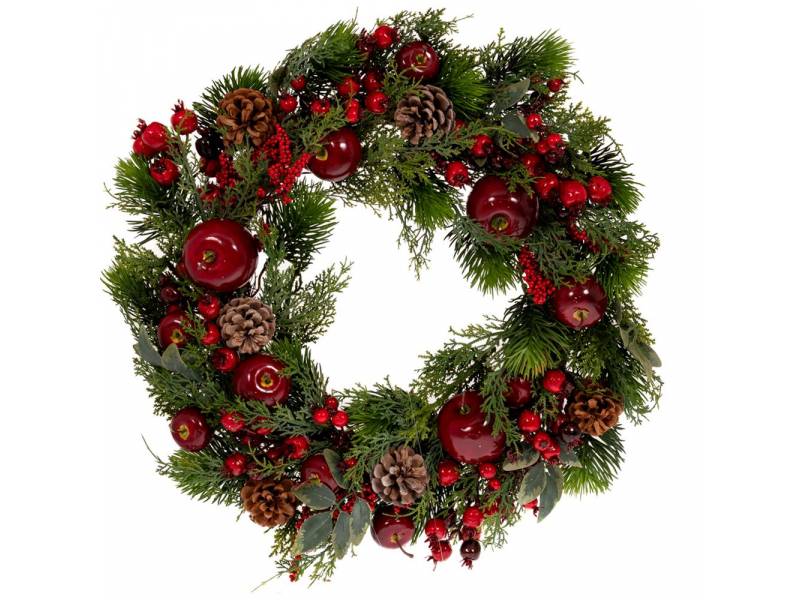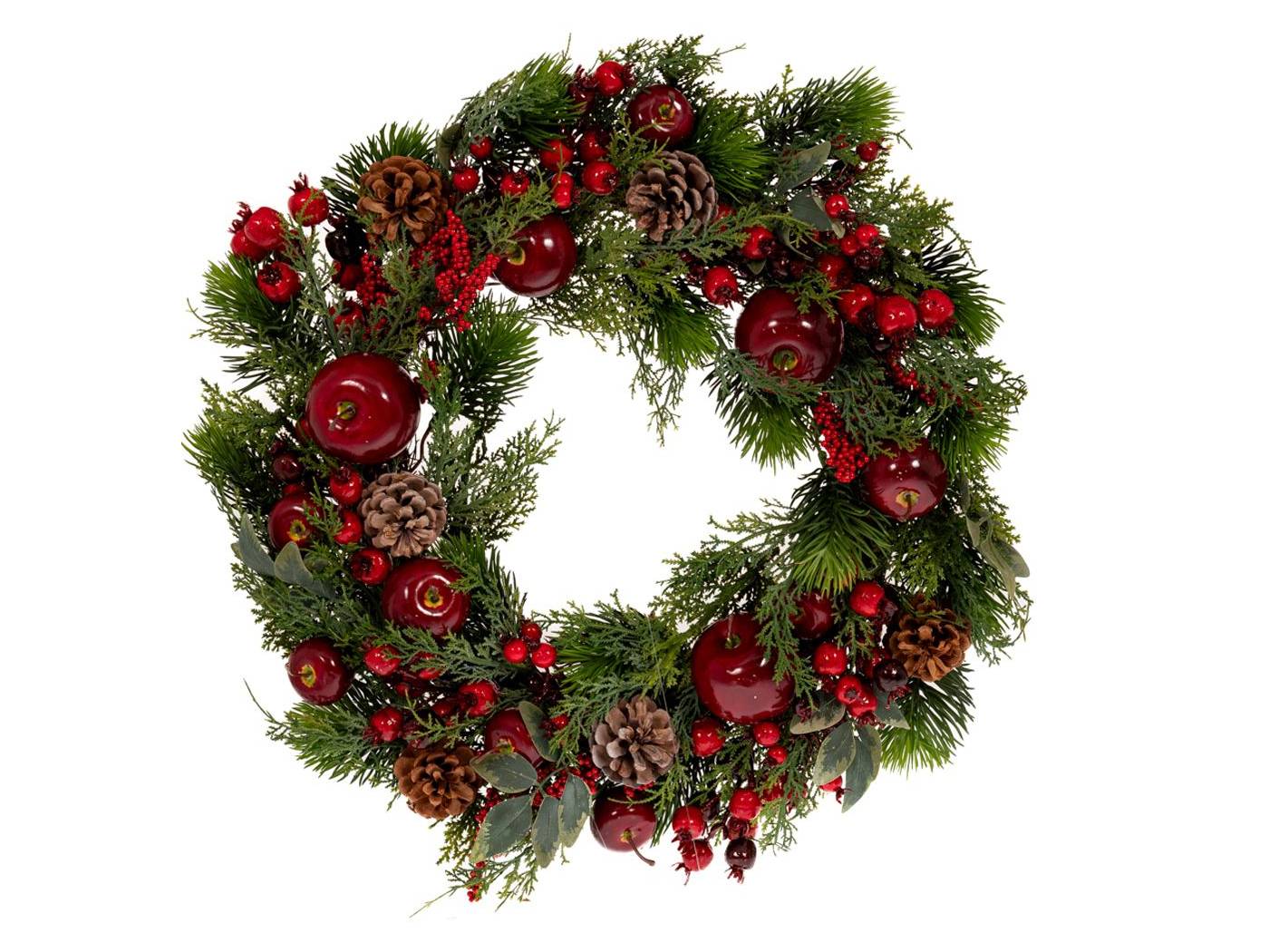 Πράσινο στεφάνι με κουκουνάρια, κόκκινα BERRIES και ρόδια 55 εκ.-bigstore.gr