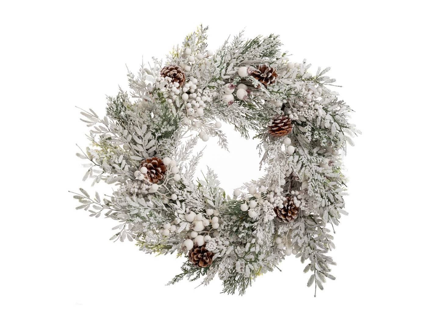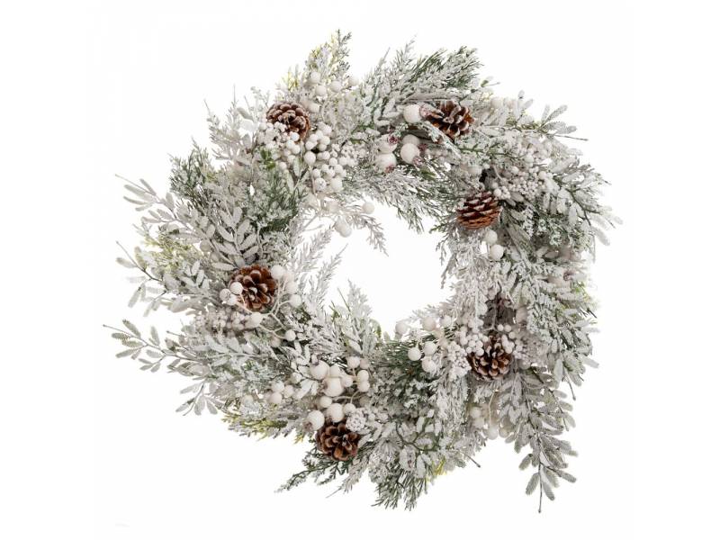 Πράσινο στεφάνι με κόκκινα BERRIESANDκουκουνάρια 50 εκ.