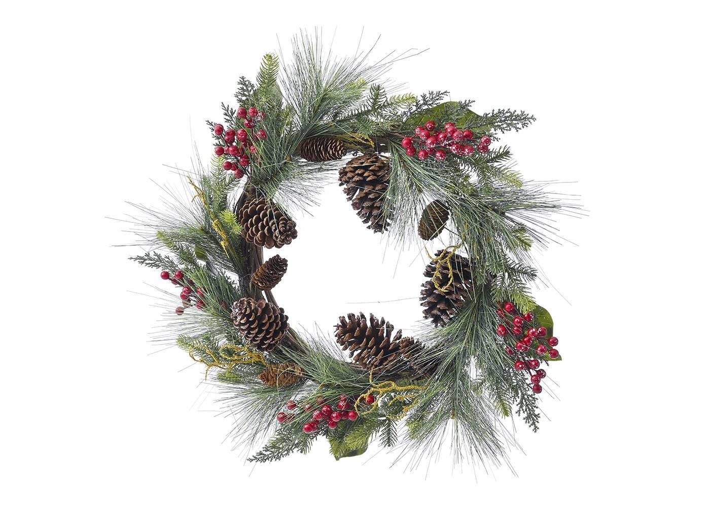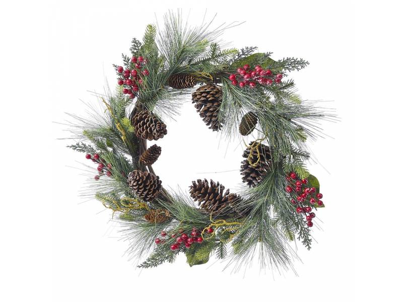 Πράσινο στεφάνι με κόκκινα BERRIESANDκουκουνάρια 50 εκ.-bigstore.gr