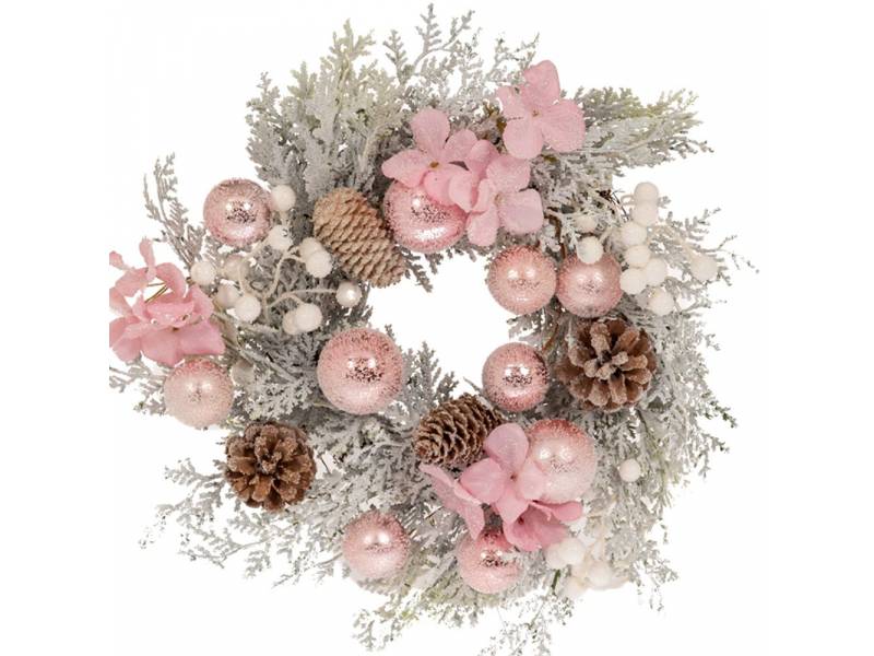 Χιονισμένο στεφάνι με ροζ BERRIES και κουκουναρια 35EK