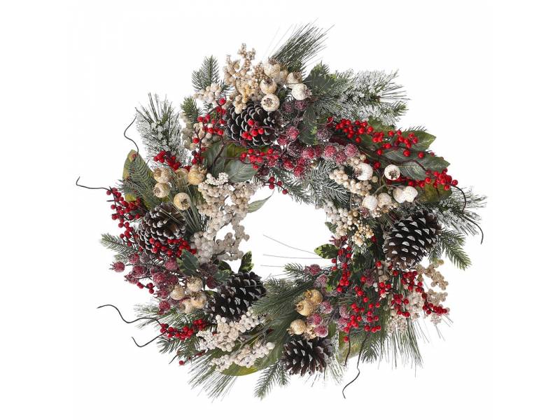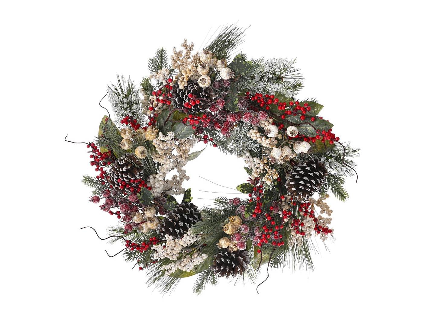Πράσινο στεφάνι με κόκκινα και χρυσά BERRIES 55 εκ.-bigstore.gr