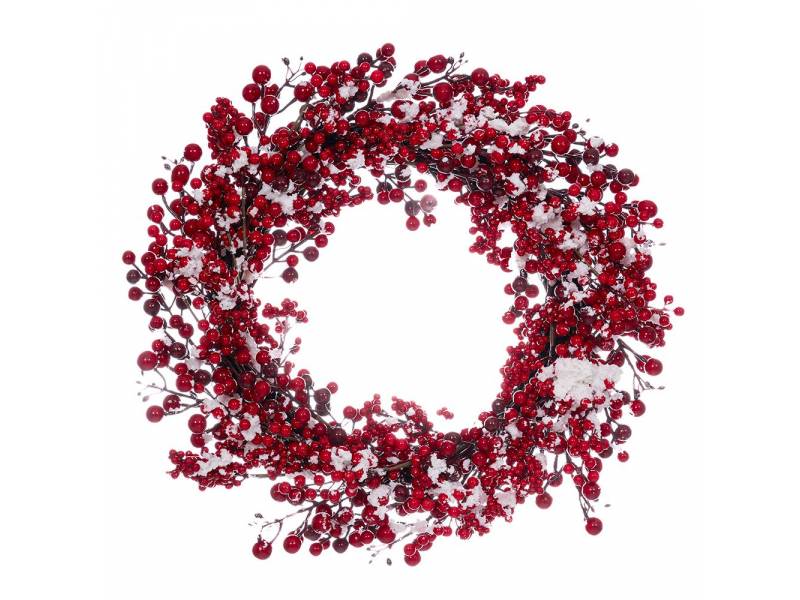 Στεφάνι με κόκκινα BERRIES και χιόνι 55 εκ.-bigstore.gr