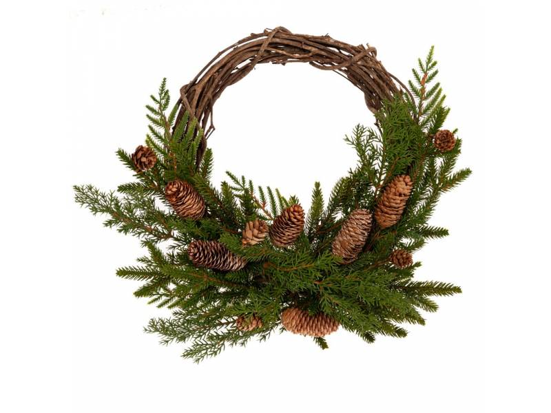 Πρασινο στεφανι ιτια με κουκουναρια 45EK