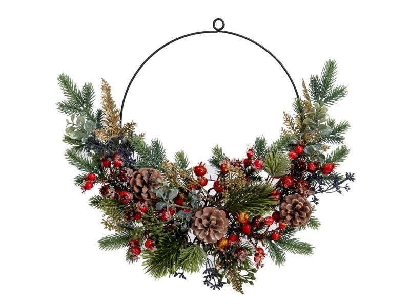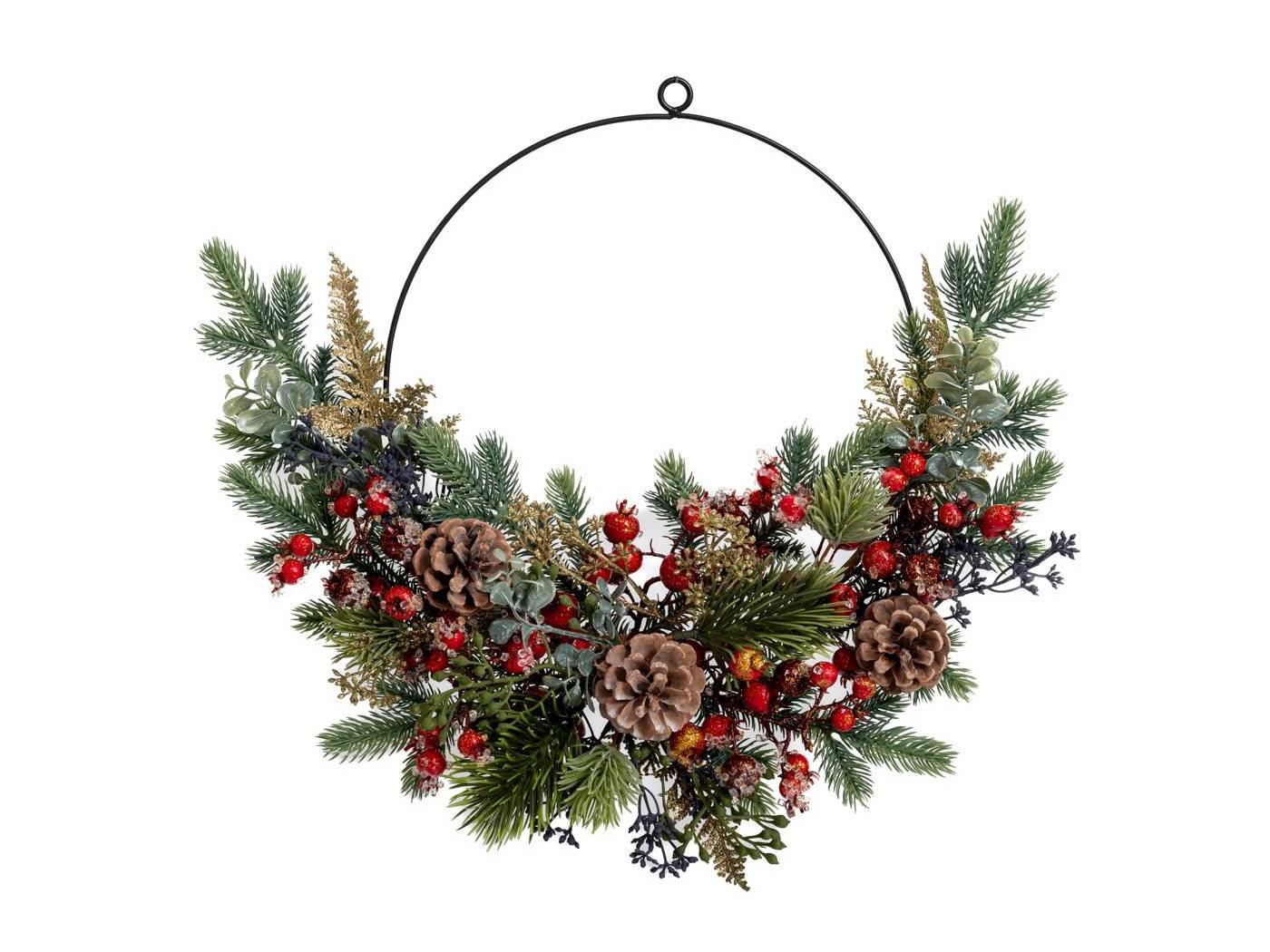 Παγωμένο πράσινο στεφάνι με κόκκινα BERRIES και κουκουνάρια 30 εκ.-bigstore.gr