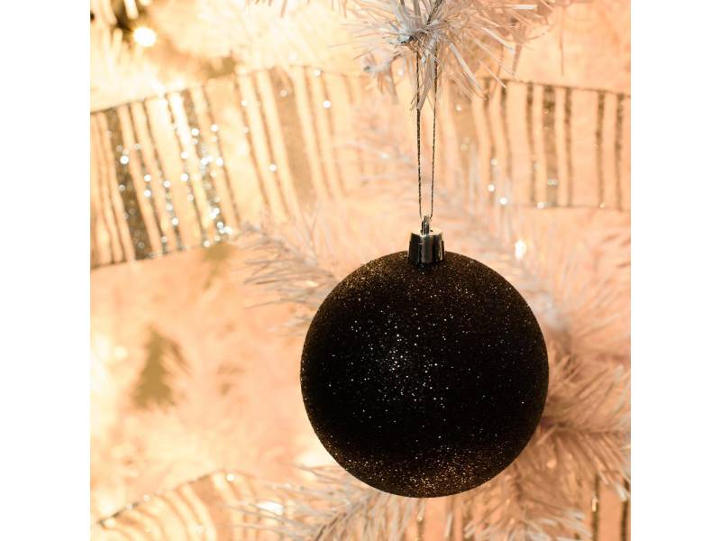 Χριστουγεννιάτικη Μπάλα glitter μαύρη, 8 εκ. σετ 6