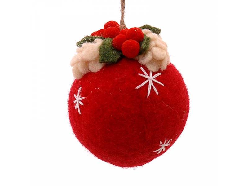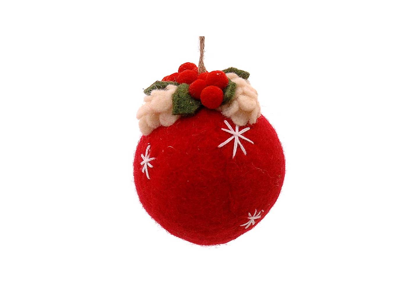 Κρεμαστή κόκκινη μπάλα με διακοσμητικά, 16 εκ.