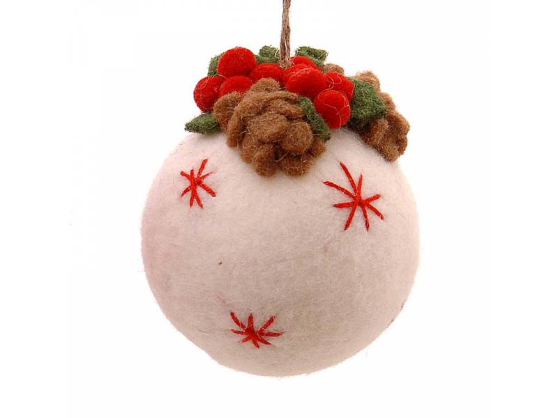 Μπάλα ντεκόρ άσπρη με διακοσμητικά, 16 εκ.