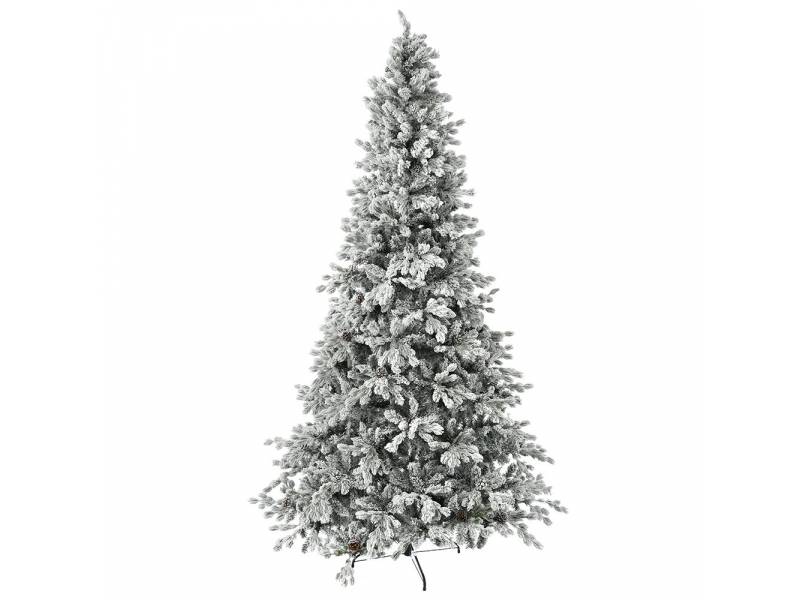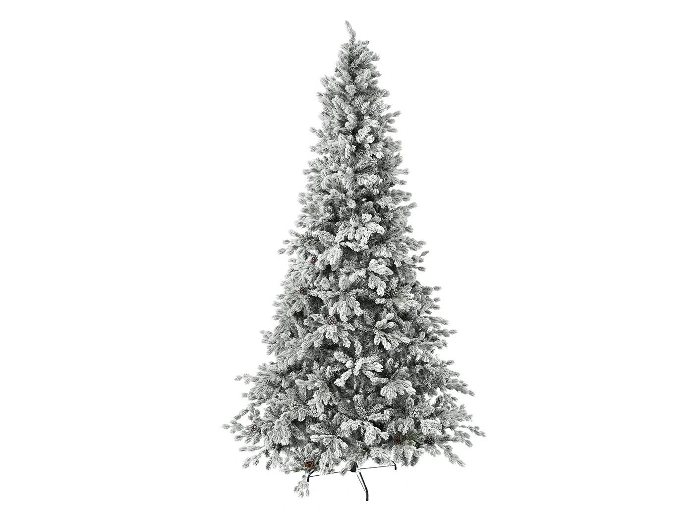 Χιονισμένο στενό δέντρο WINTER FANTASY τύπου slim με κουκουνάρες. Το ύψος του είναι 2.70 μέτρα και η διάμετρος της βάσης 145εκ.