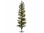 Πράσινο δένδρο PRE-LIT PENCIL PINE, με ασύμμετρα πλαστικά κλαδιά που προεξέχουν, και ενσωματωμένα 140 led λευκά σταθερά λαμπάκια. Υψος 150 εκ και διάμετρος βάσης 45εκ. Υλικό 100% plastic με συνολικά 566 tips.