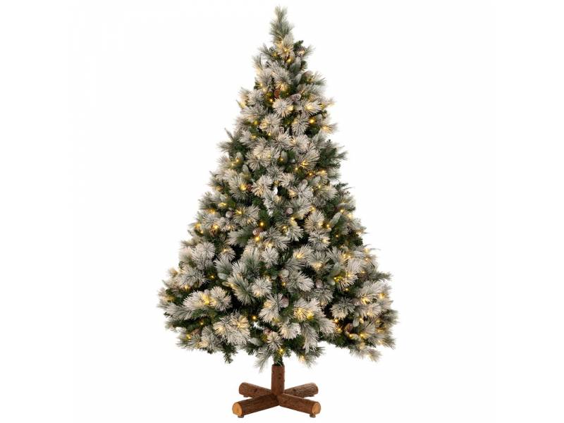 Χιονισμένο δένδρο PRE-LIT SNOWY MONTCLAIR SPRUCE, με ενσωματωμένα 500 RGB led λαμπάκια λευκά ή πολύχρωμα, σταθερά ή αναβοσβήνουν με 10 προγράμματα λειτουργίας. Το ύψος του είναι 210εκ και η διάμετρος της βάσης 130εκ.
