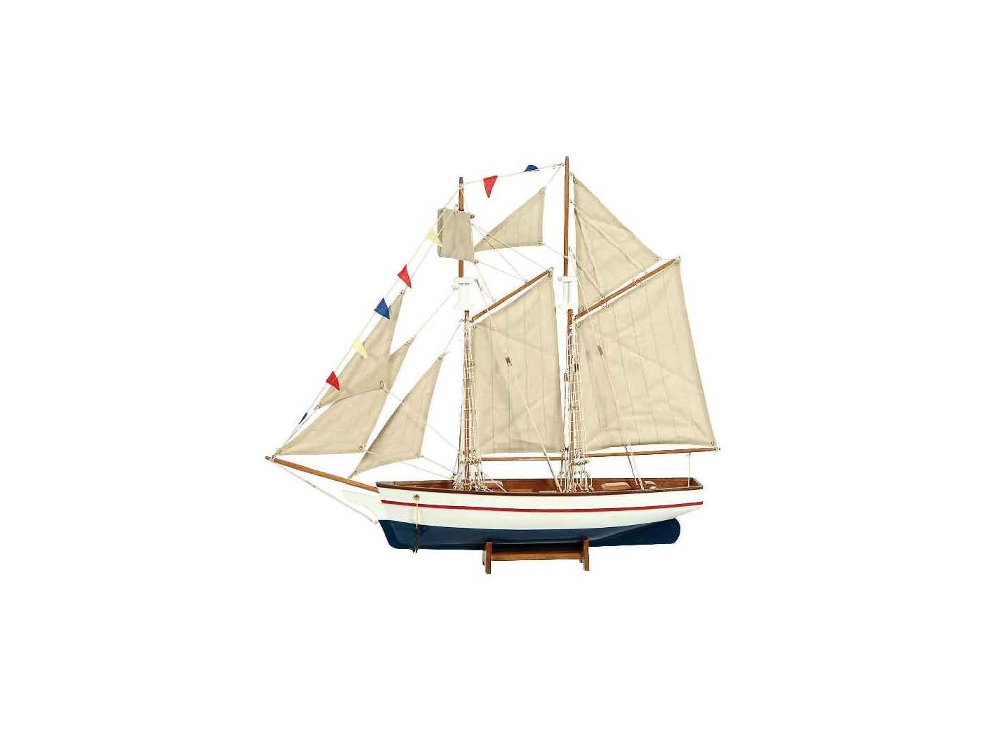 Ξύλινο Παραδοσιακό Καράβι ,Χρώμα Λευκό - Μπλέ 90 x 17 x 82(h) εκ.