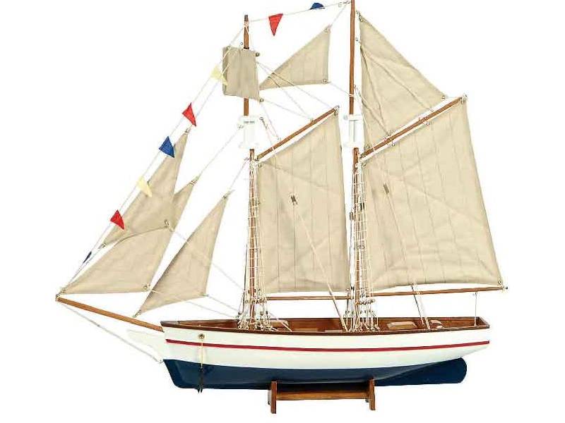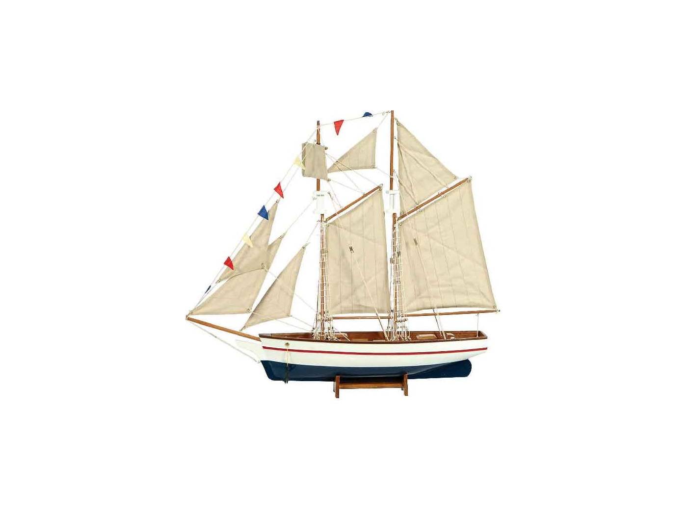 Ξύλινο Παραδοσιακό Καράβι, Χρώμα Λευκό - Μπλέ 120 x 19 x 110(h) εκ.